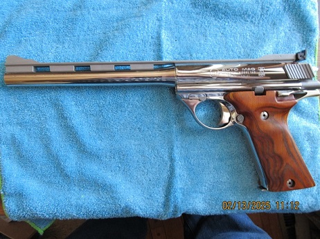 Here is "THE" original 8 1/2" barrel along with an early 6 1/2" barrel. The is XP-007. This was Harry's first shooter and he loved it. It was lost in the Bankruptcy. ![]() |