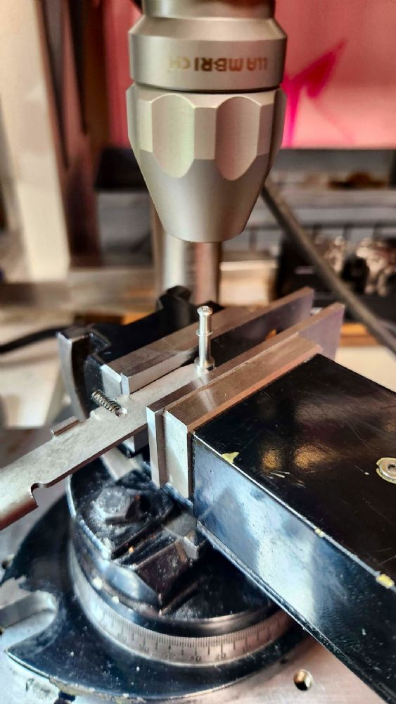 Here is a Hold-Open I did but these are much more difficult to hold firmly. I'll need to machine special jaws to keep this firmly in place. I have another vise I will try. And these are also threaded for 2-56 .......
