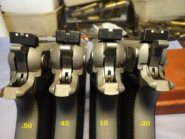 Mohili...My .30 is a AMT and so is my 50.Both those guns have white dots in the sights, the 10 & 45 are IAI and are black serated. Could this explain something?What about your .30 and 9mm, both the same AMT?Thanks,Luc.