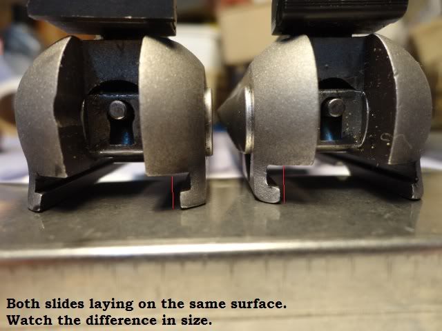 * Bushings are different sizes on both, as well as the slide bbl openings