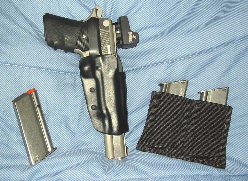 Aloha, I bought the hrip scope mount,but couldn't use my belt holster with it. Instead: customed machined a picatinny rail and replaced the rear sight. Added a Burris Fastfire. |
