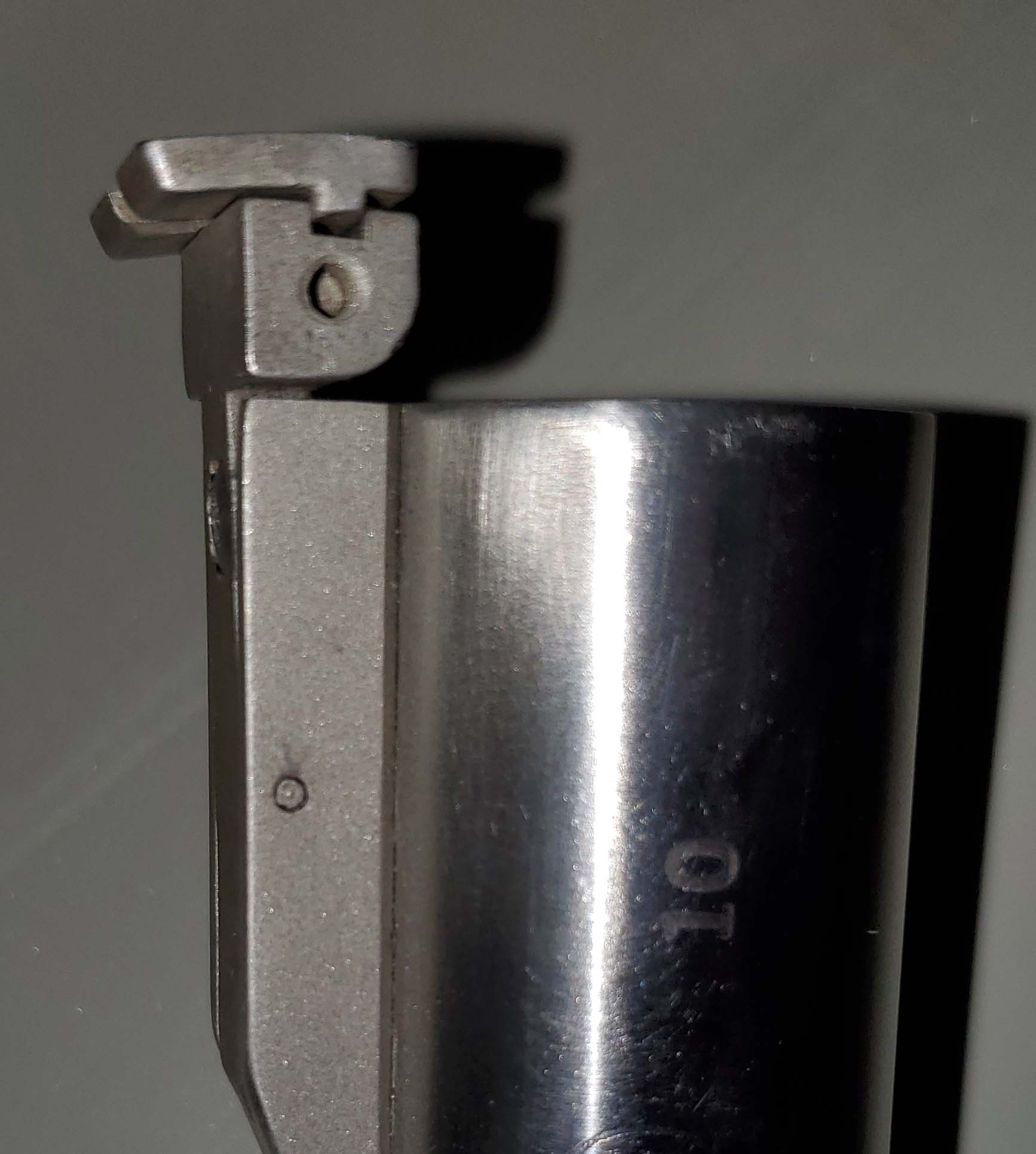 I guess the bent site base might be least of your problem's with that barrel, what happened to the bottom, any ideas or just simple abuse. Looks like someone used as a hammer, how does the rest of the barrel look. I might be able to understand a ding or two but that was a bit excessive, guess the seller Matt forgot to disclose that on his description / pictures and why so many bidders decided to back out. One thing that barrel is..................its not worth $1397, not even close but I believe its fixable. Good luck on cleaning it up, post more pics when your done, would like to see how it works out. Ed
