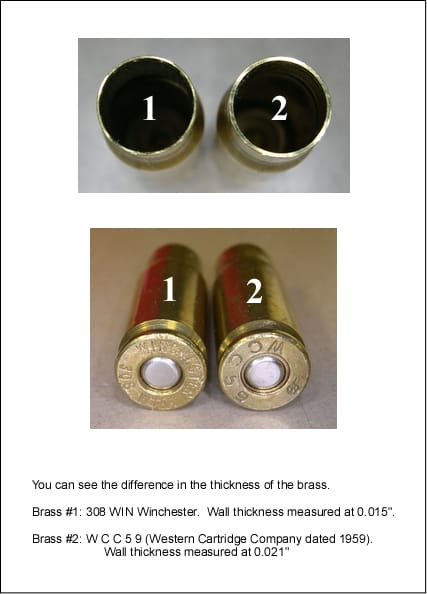 )Omie and Beemer, thank you for your numbers! I will make sure that I pay attention to loads between 19-22. Of course, being the wimp that I am, I will probably start in the 18.5 range and go up from there. I may do some 128gr XTP's just for fun. Like Beemer, I am not a hunter. So, if anyone has any pet-loads for 128gr, please share. ![]() Omie, I did get a taper crimp as everyone suggested. As for using rifle brass, I am scrapping that idea!!! As everyone has pointed out, there are thickness differences, which will have different results because of the differences in chamber space. I have taken pictures and tried to illustrate the best I could. I will be starting over with Starline brass. Any one else looking at using rifle brass, heed this warning..... ![]() ![]() |
