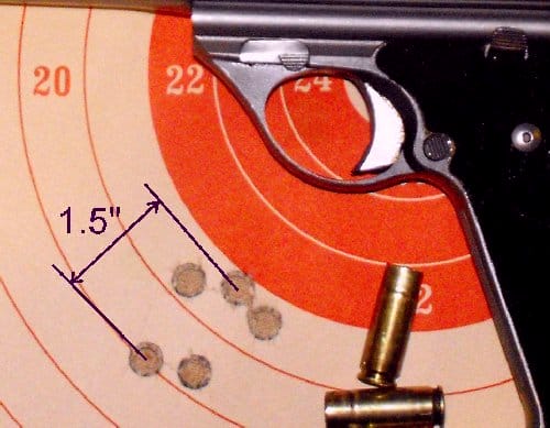Even with this Laborious seat-of-the-pants method, I was able to obtain a 1-1/2" 5-shot group at 25yds. I used 25.5g of H110.