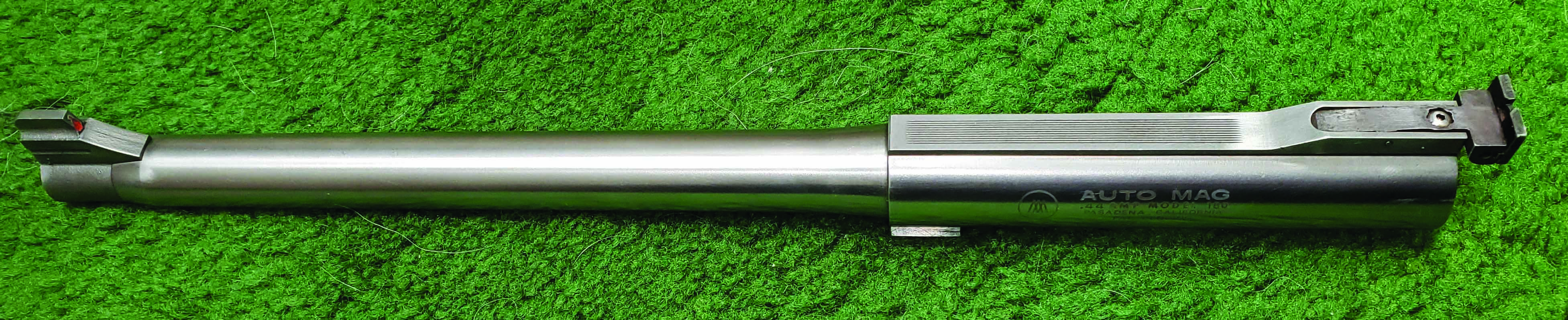 I think it would be a mistake to consider it a lessor piece because it may not have been assembled in 1971 and/or lettering proper for the time of its manufacture. It is an Auto Mag barrel. Per your observations, it shoots well. Based on those facts, I say just enjoy it. Who knows, what will happen in time with its value. All Auto Mag items are hard to find, and "custom" Auto Mag items even harder to get. In time, your 10 1/2" barrel may end up being more valuable than a standard El Monte barrel just because it is an oddity. Matter of fact if you had both on the counter (a standard 10 1/2" barrel and yours) I might pay a few dollars more today, again, just because it is an oddity and I like odd things. In the past I have seen .44 AMP barrels marked with .357 AMP lettering and thought that it should be worth a few dollars more just because of the mistake. In the rare coin world, a mis-stampped coin if often a very unique piece and worth a significant amount more than a standard counterpart. As they say, beauty is in the eye of the beholder, and you are the man with his hands on it! If you decide you wish to throw it away because there is some question about its history, I will be very happy to rescue it. ;-) Enjoy GH
