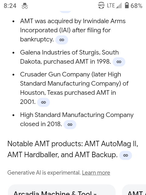 Alan is quite well known in the High Standard Pistol world and well respected. They did buy the parts from AMT (I think the last location was Sturgis).