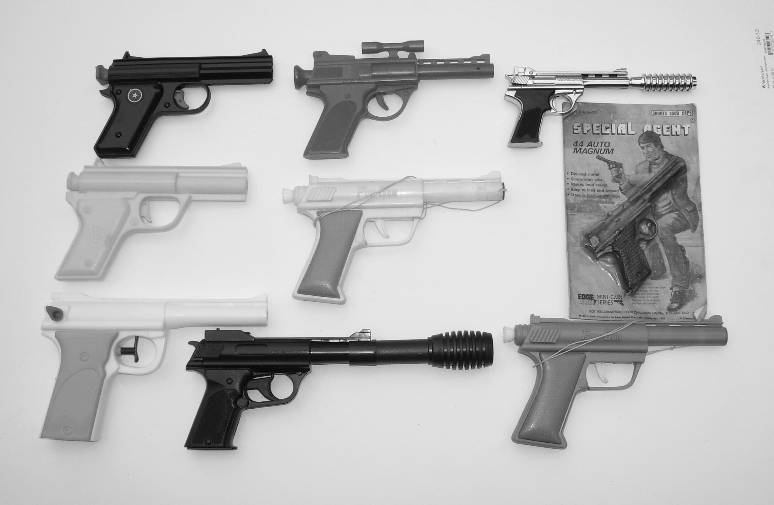 There is a square in my packaging that might have contained the caps for the Special Agent. And the card back says something about “fulminate” but the staples are intact (and rusty) so it hasn’t been opened. Guessing caps were sold separately. It is cool to see the same toy, same country, in different packaging. Happy collecting!