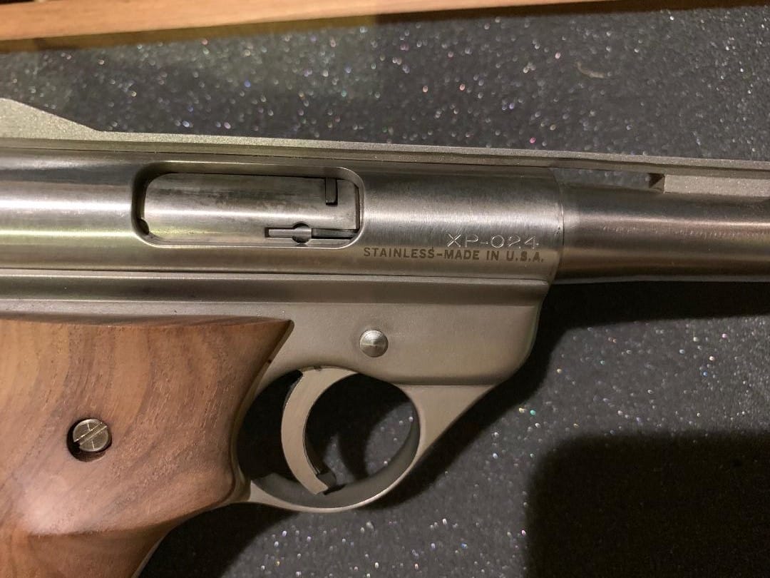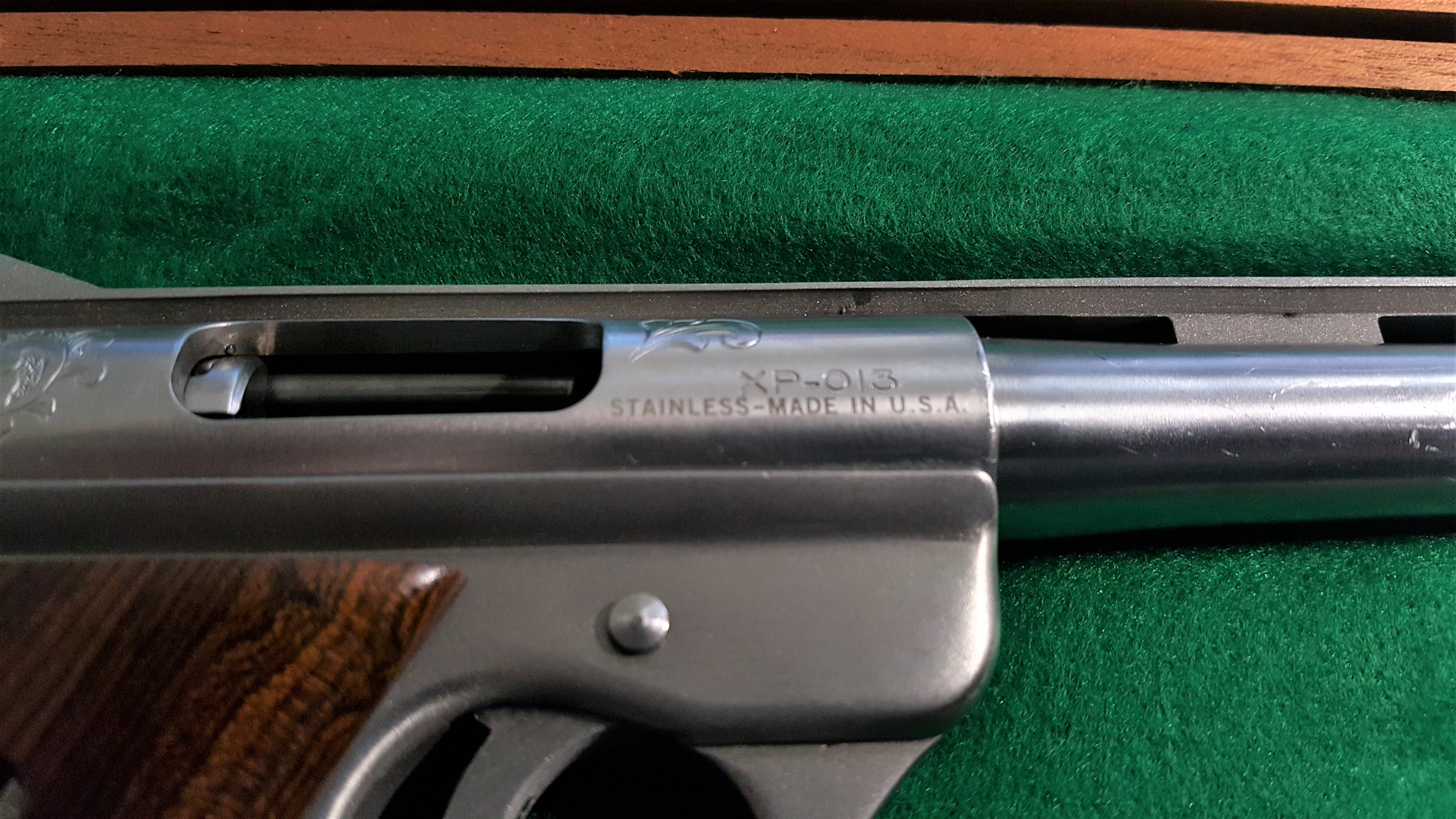 It was Bryan Maynard's brain child and came to prominence when Brian's XP 02 was featured on the cover of the June 85' edition of Guns & Ammo.  For a while it was said Brian made about a dozen which were sold/given to some AMT executives. After Harry's death his XP-001 came to market which sparked a new story. Apparently Brian said he did not add a dash between the XP and the serial number on the guns he built which lead to speculation that a second batch of XP's were produced that had a dash between the letters and the numbers.