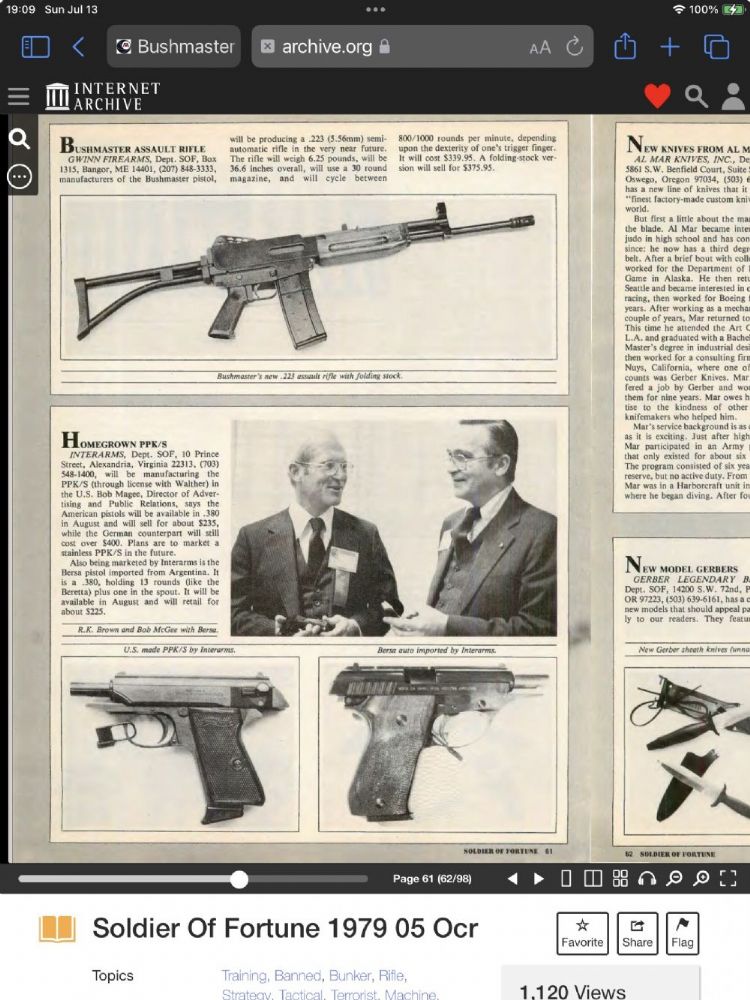 I swear I have seen this rifle in an old issue of Soldier of Fortune magazine. And speaking of that mag, I just got the August 1971 issue of Guns magazine that introduced the MAC M10 and M11 Ingram to the world. The author of the article: Robert K. Brown, the creator of the SOF magazine!