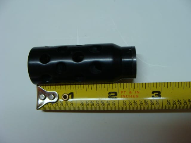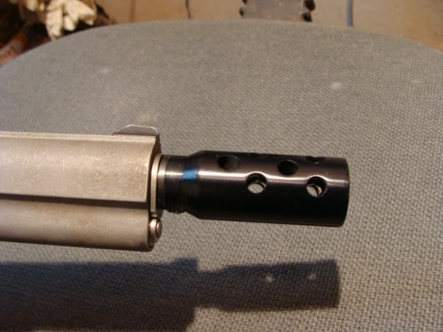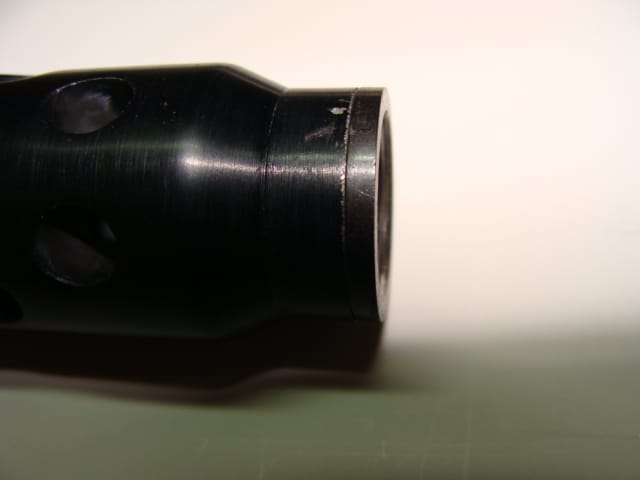 Heres a better look at the muzzle brake broke down the brake is made of aluminum with a steel insert in it dont know if its screwed in or pressed in.