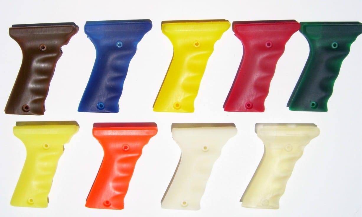 I made them in different colors.  Some European countries require colored grips on a gun if you take it hunting.  Japan does too.  I have had a small market in France and Italy for my colored Auto Mag grips.