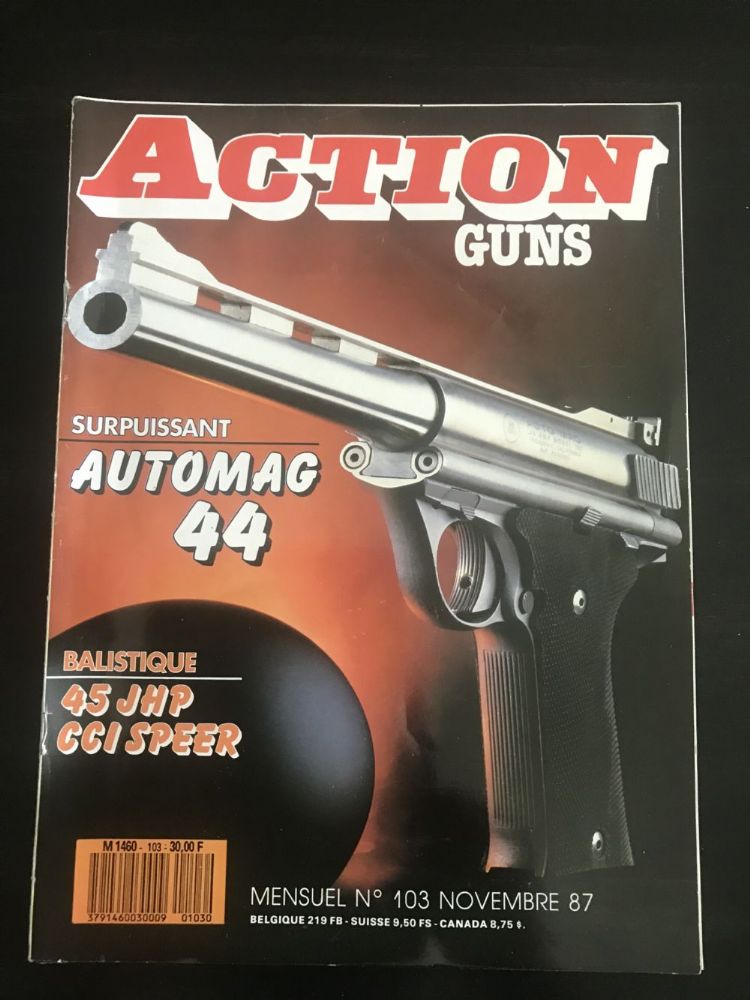 Found this for auction online. And after a trip back and forth-4 times-across the eastern half of the U.S., it finally arrived after 2 months in the mail (frigging Post Office). French magazine article on the Auto Mag, featuring a Pasadena gun, from November 1987. Anyone care to translate?? if anyone wants a copy, send me an email at 39manchuranger@gmail.com. I’ll try to pdf it, if not I can attach photos of the cover, table of contents and the 6 page article in a return email. Thinking of Bruce and Ian since they have an extensive list of pubs related to the Auto Mag. Jim