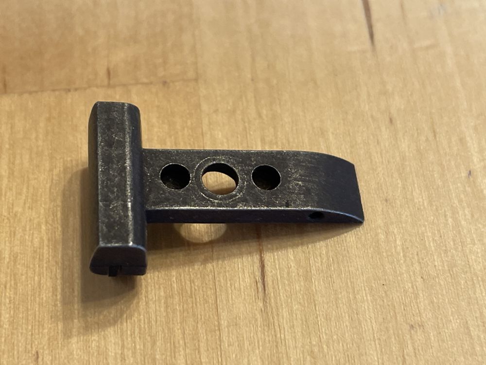 Interestingly, the underside of the sight has a hollow cavity. There is a boss cast into it through which the roll pin is inserted. So shortening the front of the sight and moving the roll pin aft is not as easy as it might otherwise be if the sight was solid.