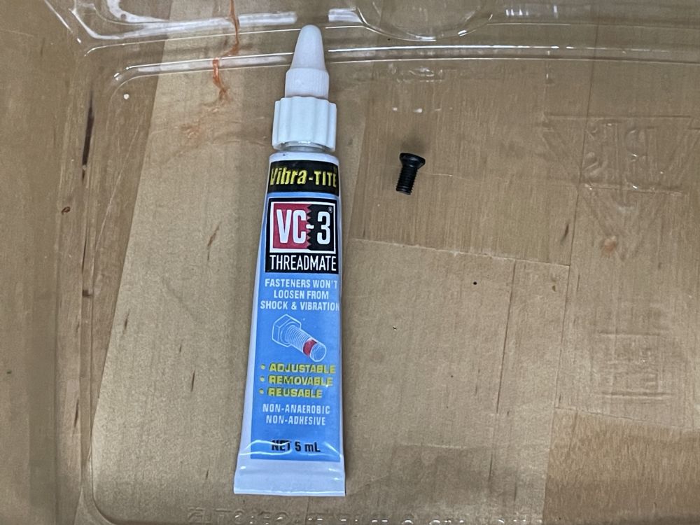 I stopped by a friend’s house on the way home and he hooked me up with a product called Vibra-Tite. It’s like Loctite, but different. It’s applied to a threaded fastener and allowed to dry for 24 hours. Once installed, it provides just enough friction to keep the fastener from moving under vibration, but it can be moved manually, and unlike Loctite it’s reusable—that is, if can be moved repeatedly and still retains its friction properties. He gave me a small tube, which I will also likely use on my Auto Mag recoil rods which are forever coming loose.