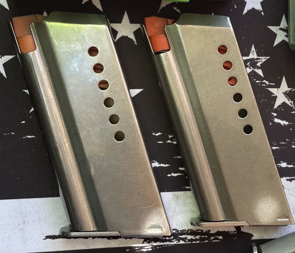 Here are 5 mags. One of the orange follower ones is Mike's, the other 3 orange followers are mine. The one with the black follower is for my AMT-III 9mm WM.
