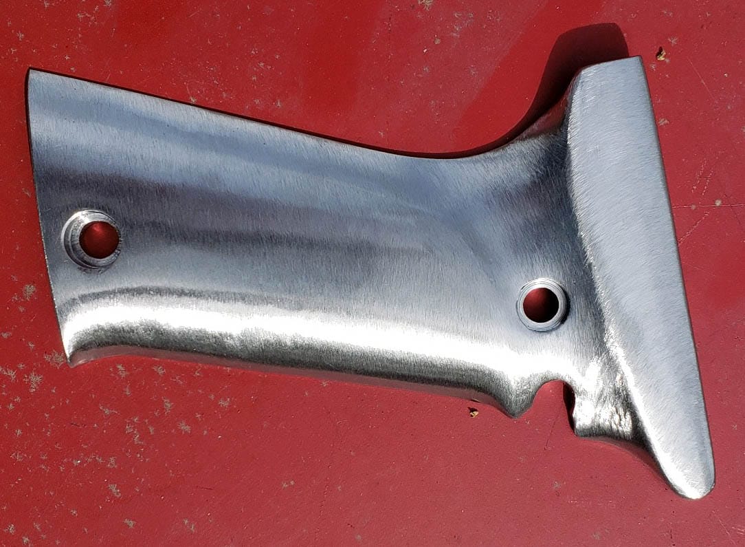 Hello George, Well I contacted William to ask him about a set of aluminum grips & he said he could make a set ..... but then I was thinking about how about Titanium & asked if he had ever tried making any grips from that & he said not yet....but would like to try, so I picked up some 6AL4V Titanium on ebay it was a bit too thick ....1" thick & 12X12 so he would need to trim everything down. The material cost me $346.00 & about 4 days after I had found smaller plates 1/2" think & would have made things much easier on William but I had already purchased the other size. So why Titanium ...to be a little bit different....I'm not really sure , I've always had a fascination with the it I guess. William said the Titanium grips are actually heaver then the aluminum set. I'm planing to try & finish up the final sanding & polishing myself not to save any money, it's fun trying something I've never worked on before.......call me crazy I guess. But I must say this William Bryant sure is the ultimate kind of fabrication , just absolutely amazing hands down ! |